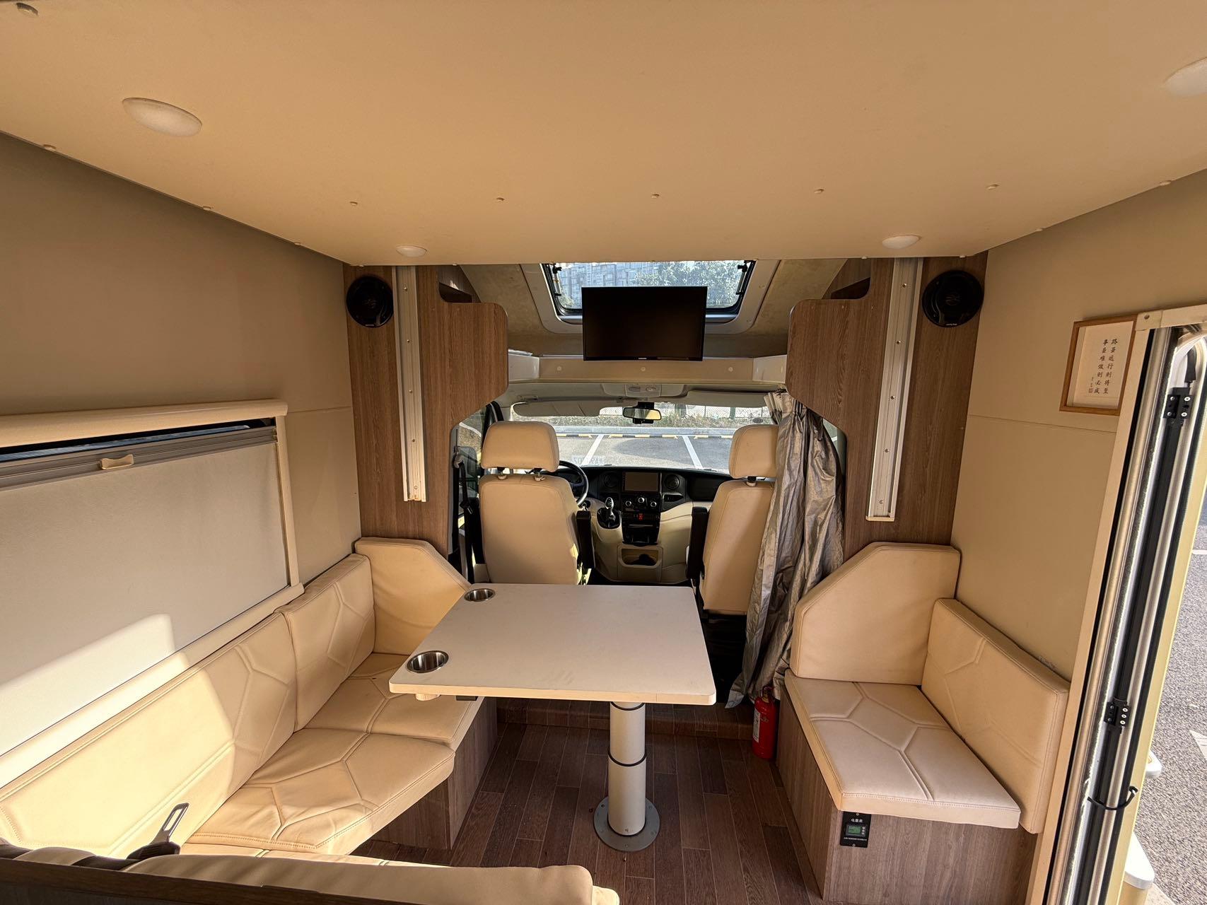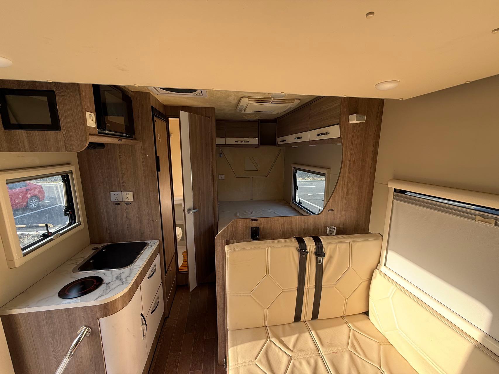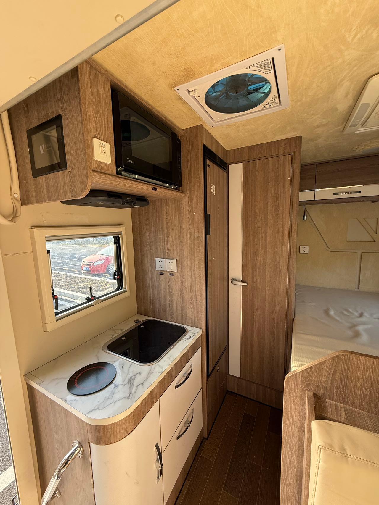 功能配置:180L清水箱、70L灰水箱、18升黑水箱,多美达进口变频空调;3000W逆变器、15度锂电池、600W太阳能板,柴油柴暖;152升进口冰箱、800W电磁炉、微波炉、外置柴油灶、24寸电视机+手动3.5m遮阳棚;抽拉式马桶、电动踏步、外置淋浴