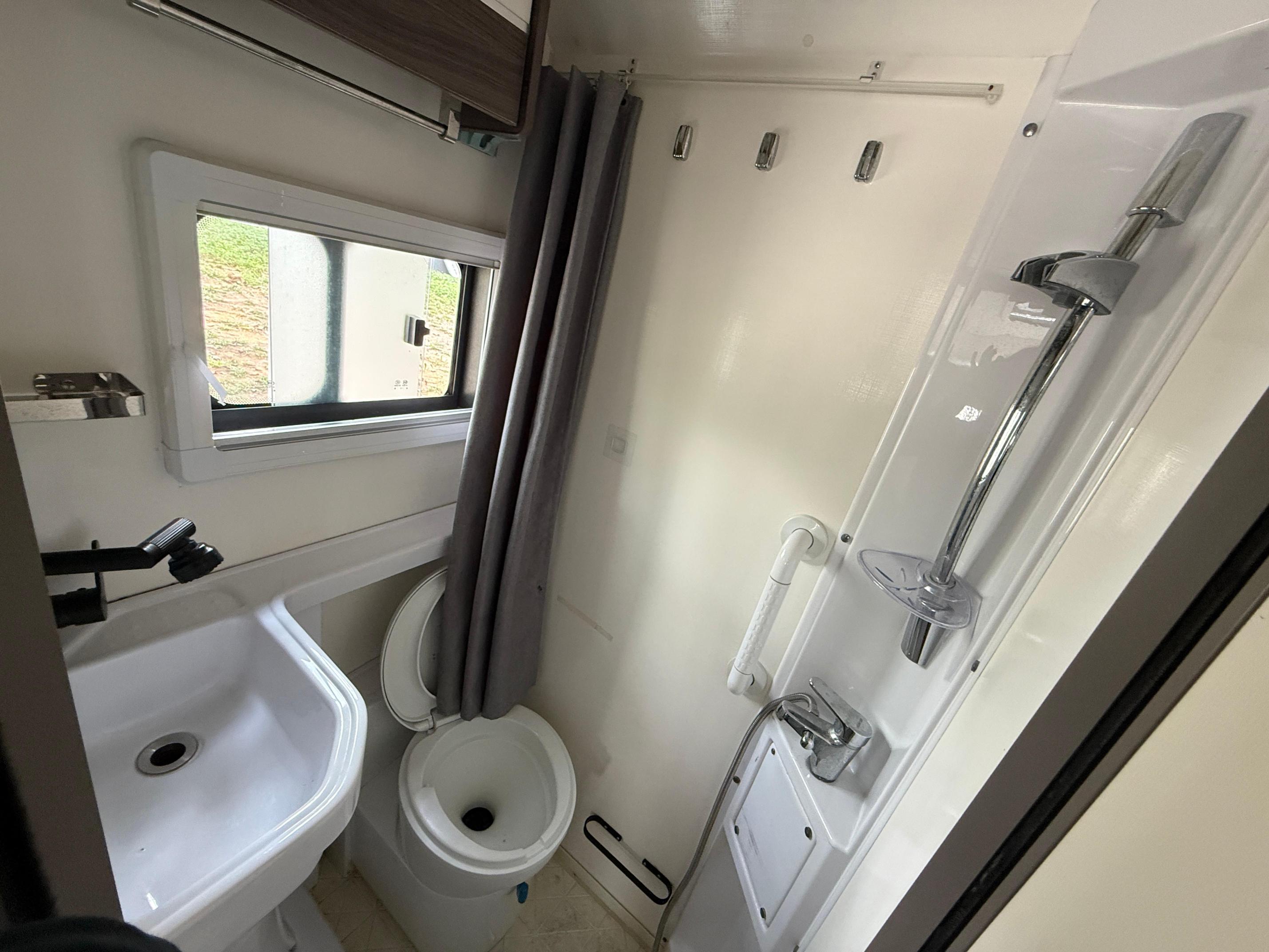 • 顶置双向换气扇+可收折晾衣杆+拖鞋架